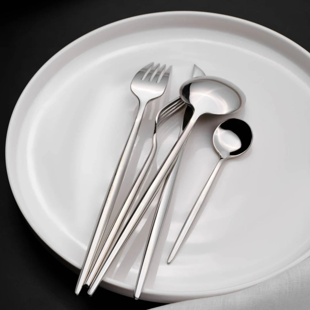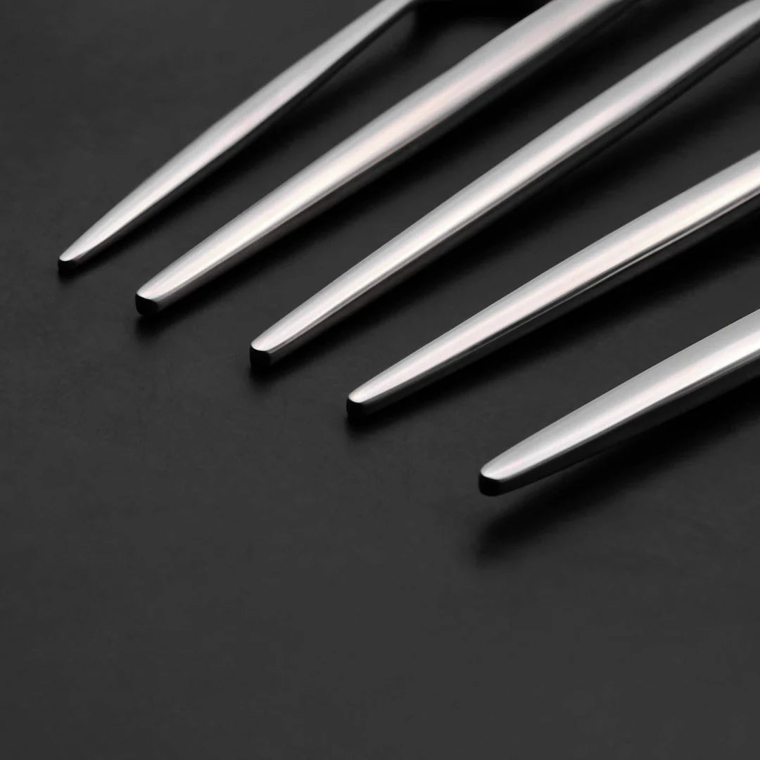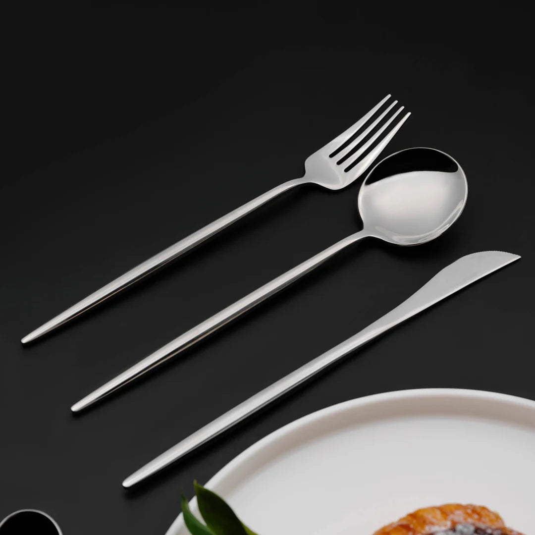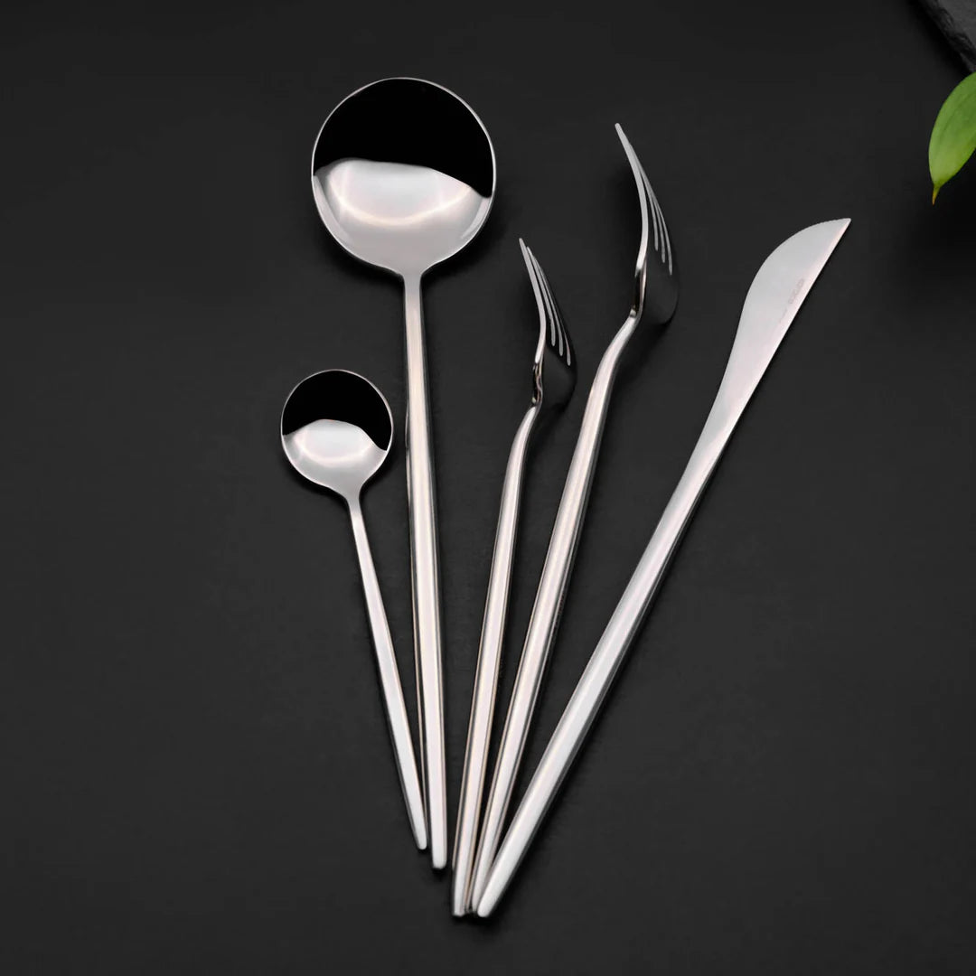 12 tafelmessen (22,5 cm) 12 eetlepels (21 cm) 12 tafelvorken (21,5 cm) 12 dessertvorkjes (18 cm) 12 theelepels (13 cm)...