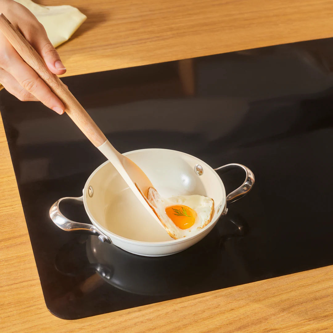 Met de Karaca SwissCrystal koekenpanset, voorzien van een antiaanbaklaag van SwissCrystal, kunt u op een praktische manier allerlei gerechten bereiden, zoals eieren, vis en kip, zonder olie te gebruiken. De antiaanbaklaag is gemaakt van Zwitserse kristallen en bevat geen schadelijke chemicaliën zoals PFAS, waarvan bekend is dat ze de gezondheid kunnen schaden.