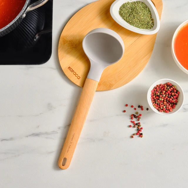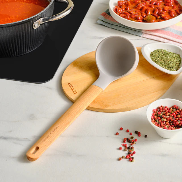 Ontdek de Karaca x Refika collectie – keukentools met houten handvatten en hittebestendige siliconen koppen die het werken in de keuken tijdens de winter eenvoudiger maken.