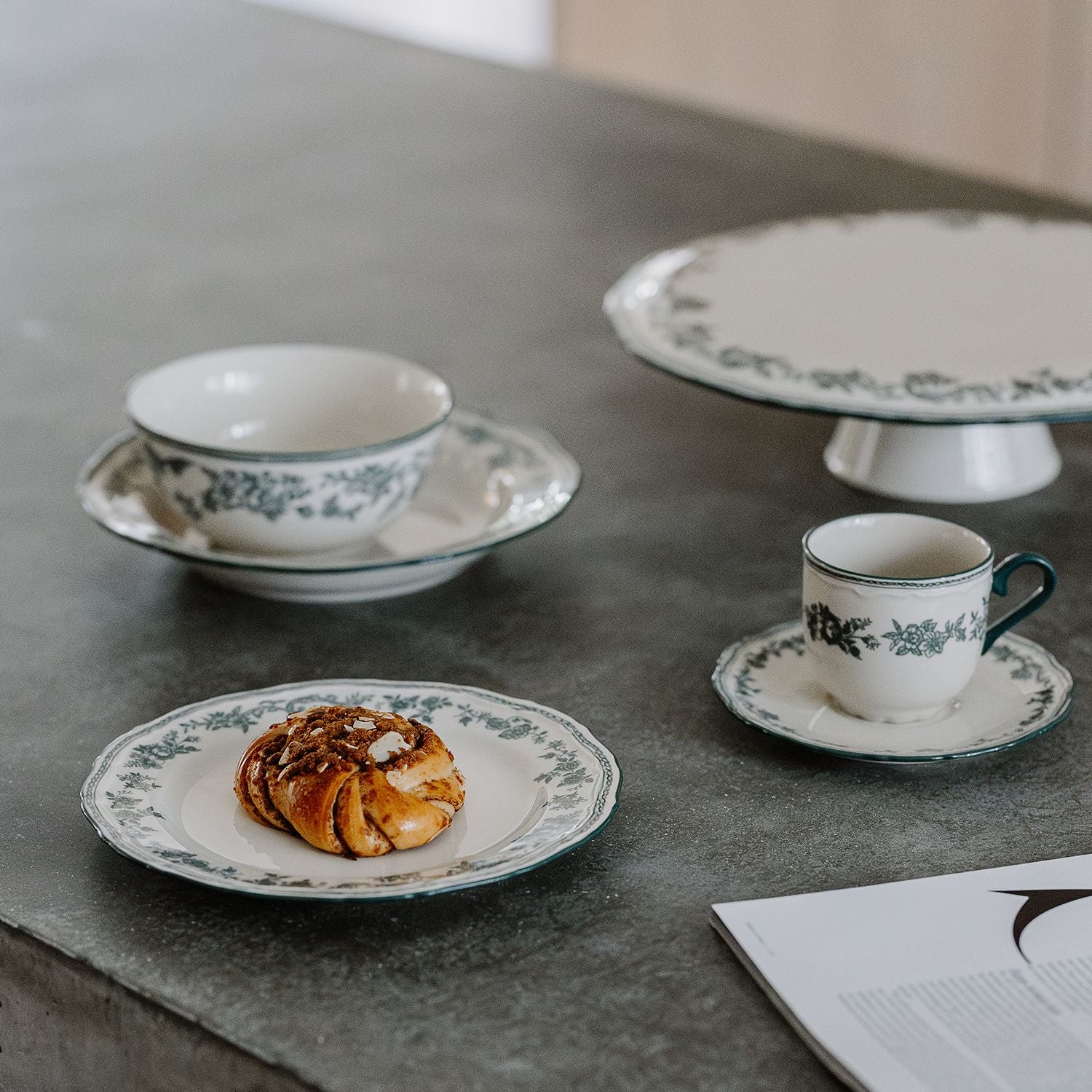 Serveer je culinaire creaties in stijl met de 15 cm groene kom uit de Cyril collectie. De porseleinen afwerking en delicate bloemenmotieven geven een nostalgische maar moderne uitstraling aan je eettafel. Perfect voor soep of salade, een onmisbaar item voor elk verfijnd huis.