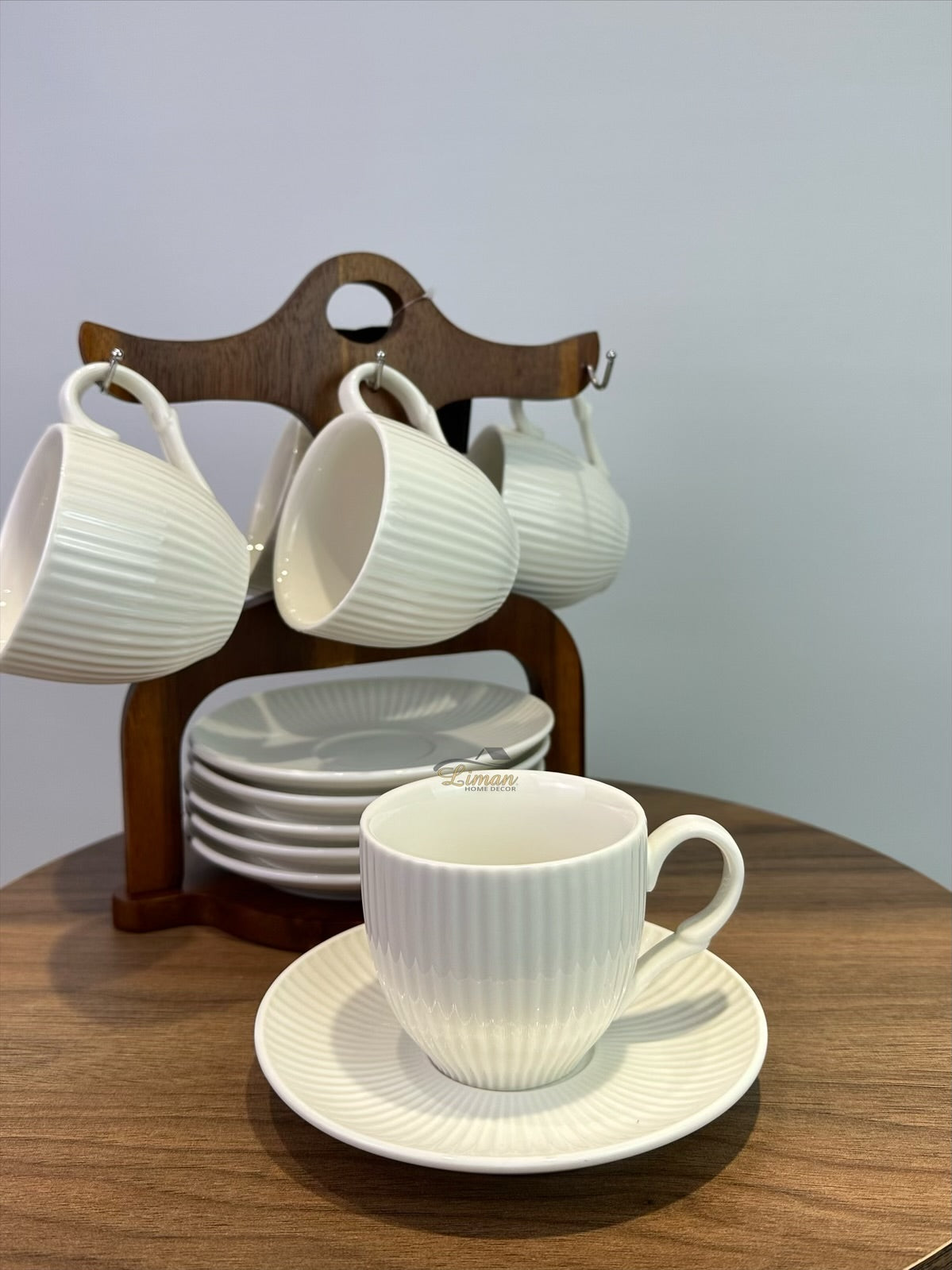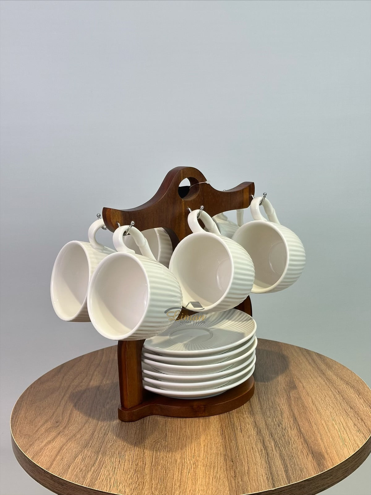 Inhoud6 x kopjes6 x schotel1 x stand Omdat het product gemaakt is van acacia, kunnen er kleurverschillen optreden.Het is...