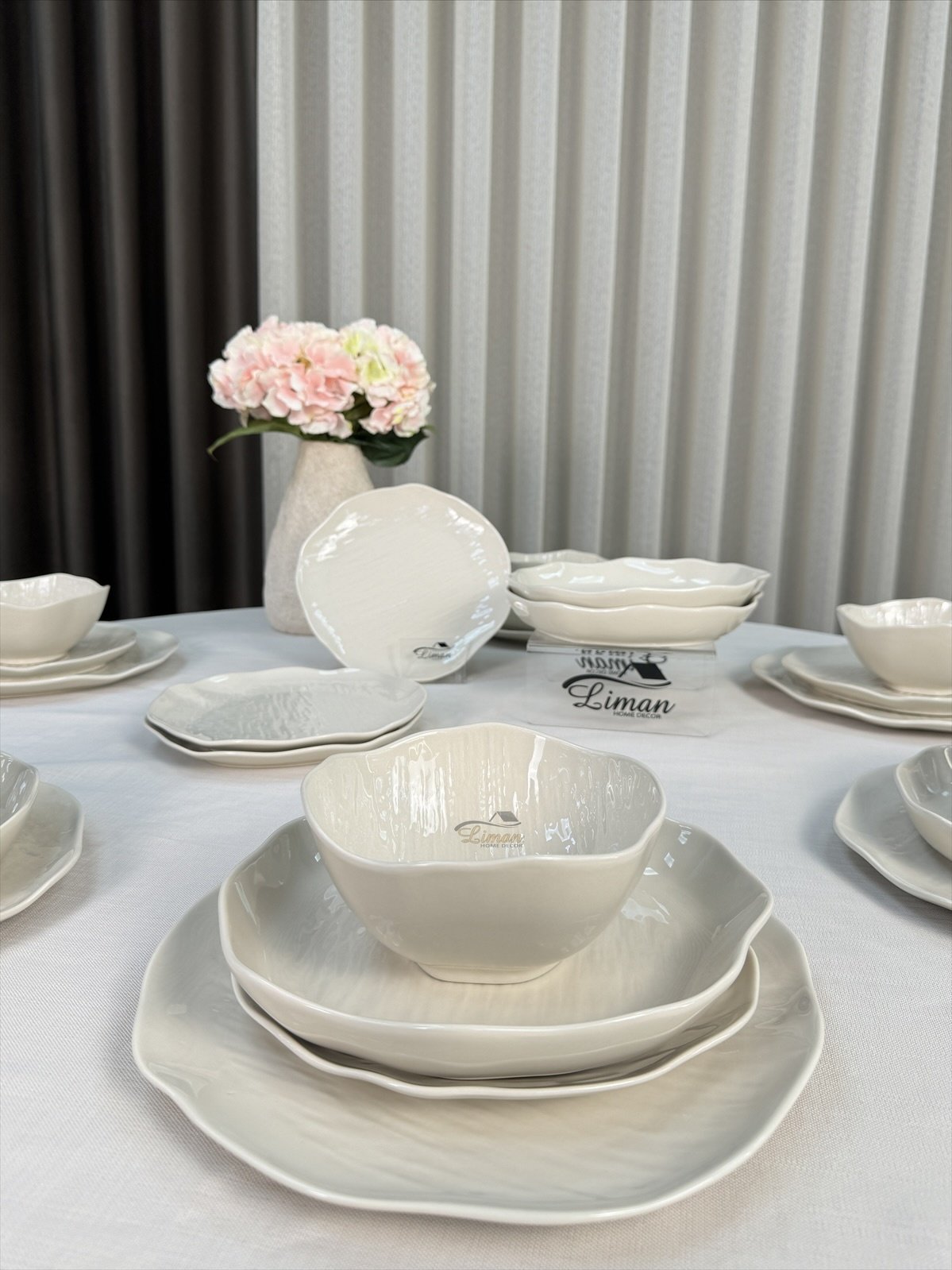 Inhoud van de set: 6x Plat bord 6x Plat bord 6x Diep bord 6x Soepkom 1 x serveerbord 1 x...
