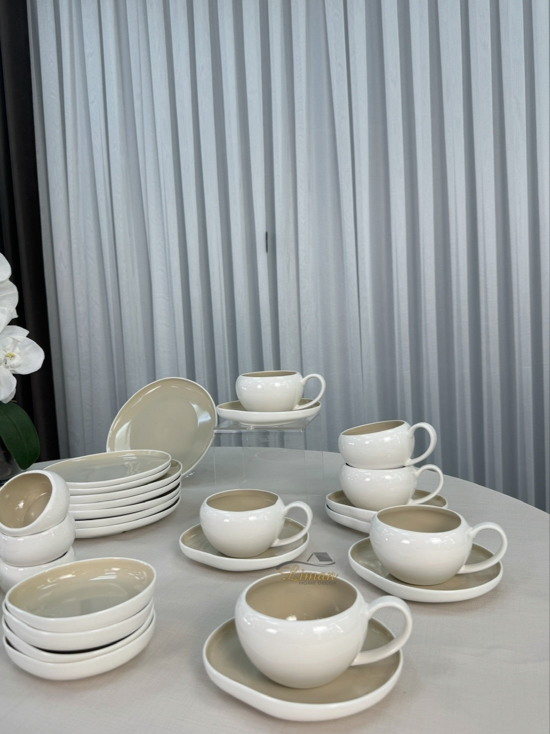 Deze set is perfect afgestemd op gezelschappen van 6 personen en combineert functionaliteit met verfijnde esthetiek. Elk stuk is vervaardigd uit hoogwaardig porselein dat zowel vaatwasser- als magnetronbestendig is – ideaal voor dagelijks gebruik én speciale gelegenheden.