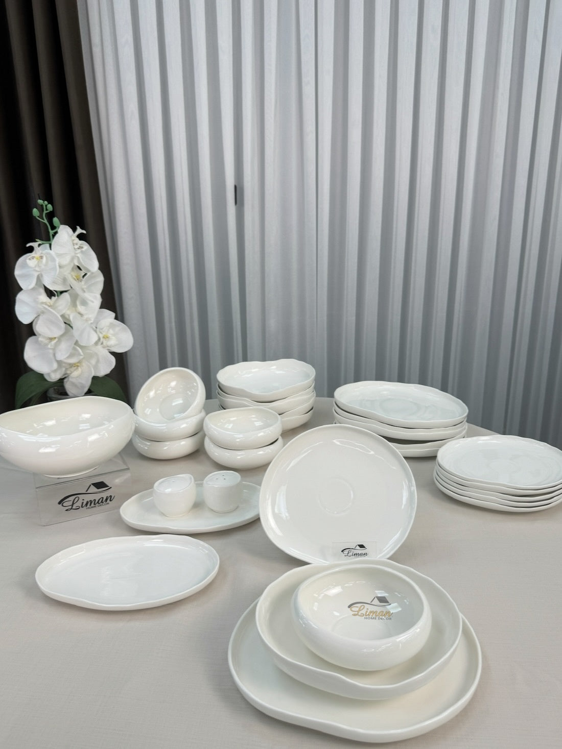 6 Serveerborden (27, 6x24, 6cm) 6 stuks Cakeplaat (22, 4x20, 3cm) 6 stuks dinerborden (22x19. 5x5. 5cm) ...