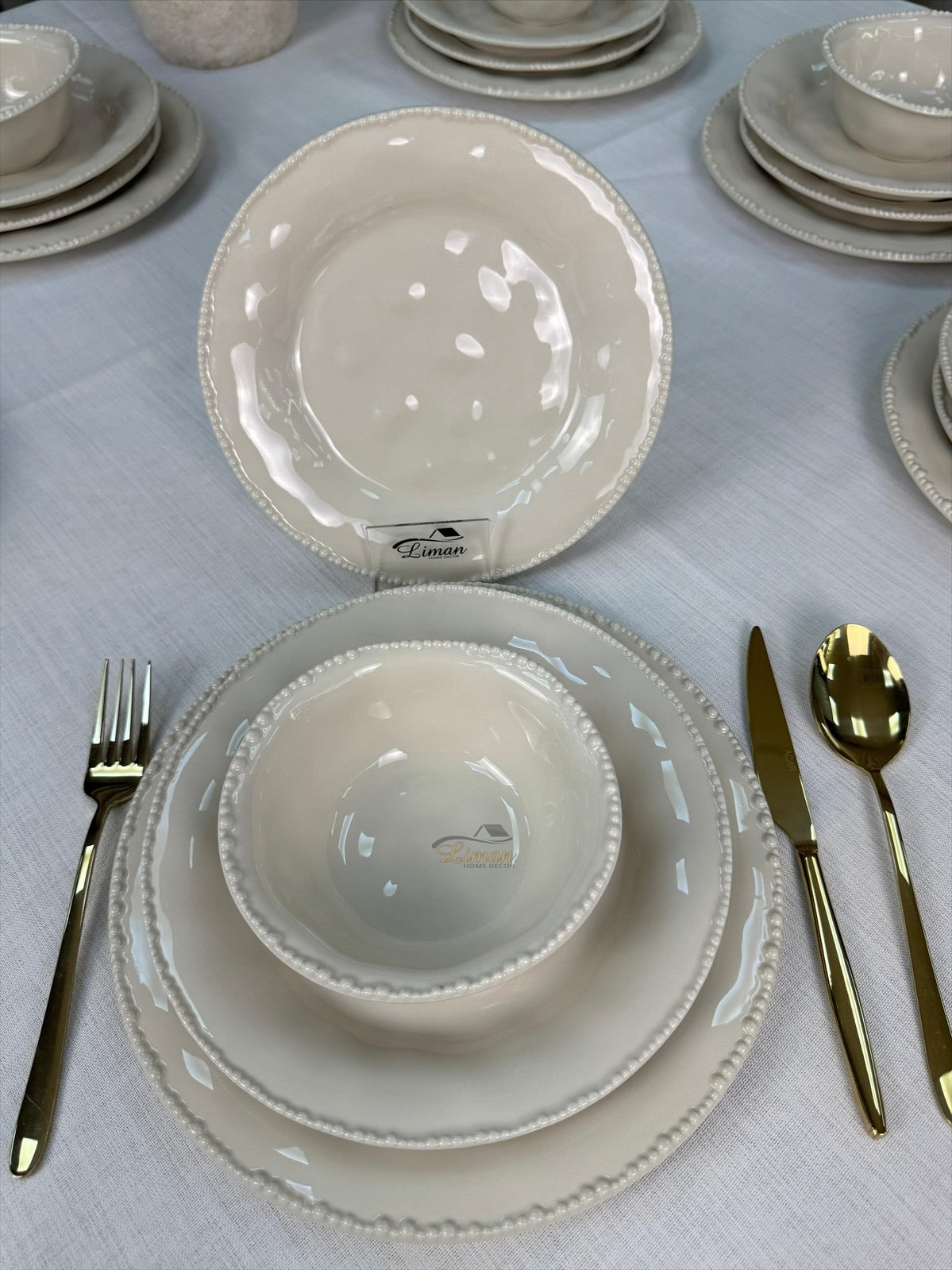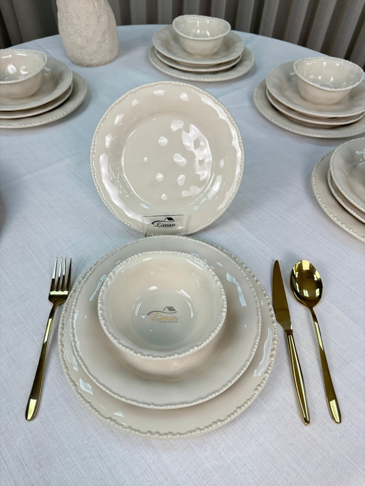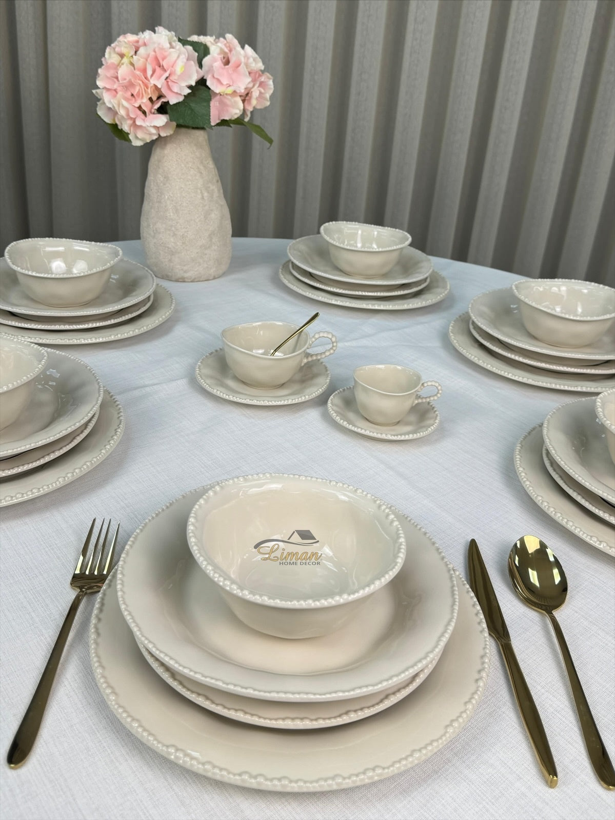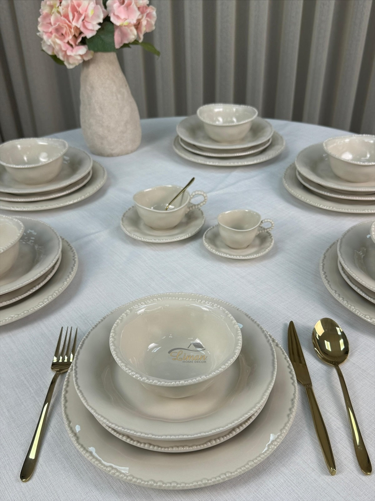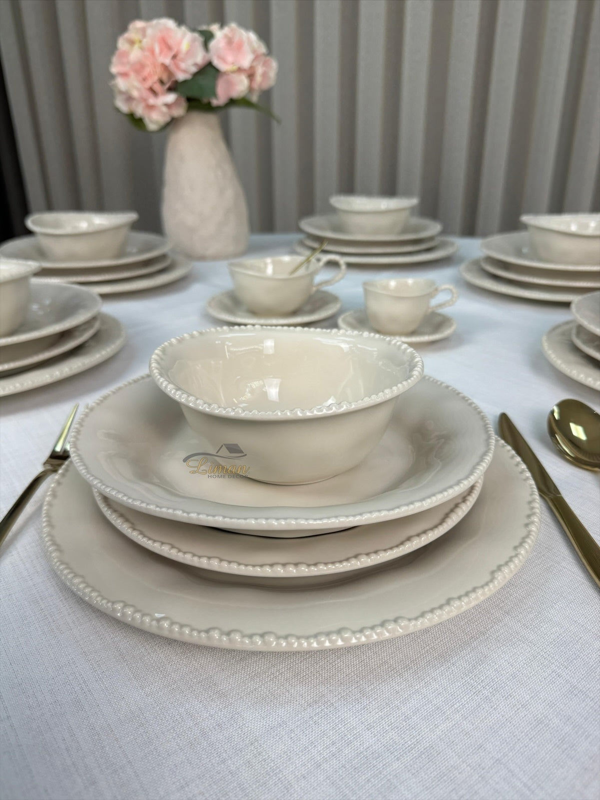 Laat je tafeldekking spreken met de tijdloze charme van Parel Beige – waar stijl en gebruiksgemak hand in hand gaan.