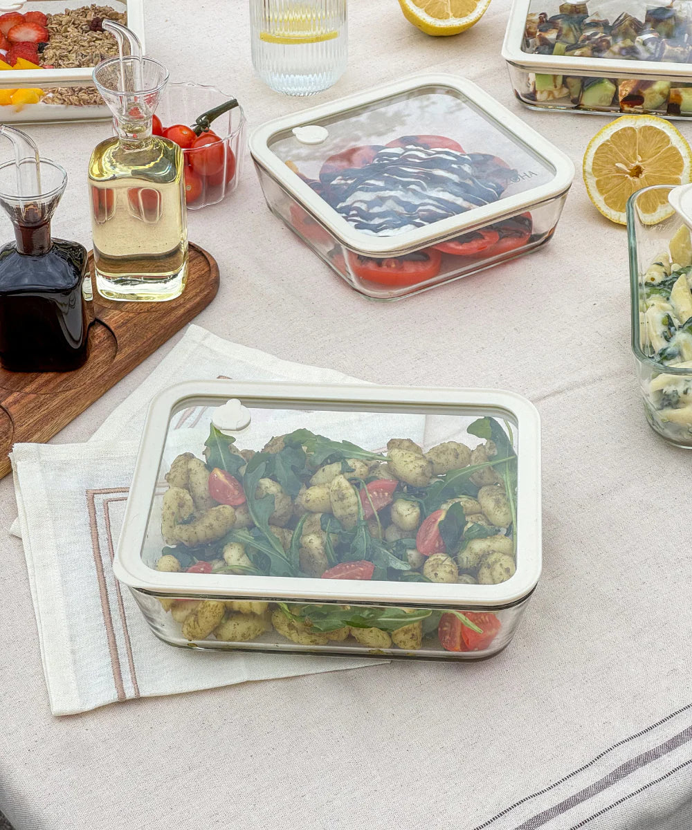 Vers houden met systeem: De luchtdichte deksels zorgen ervoor dat je gerechten langer vers blijven – zonder geurverspreiding in de koelkast.