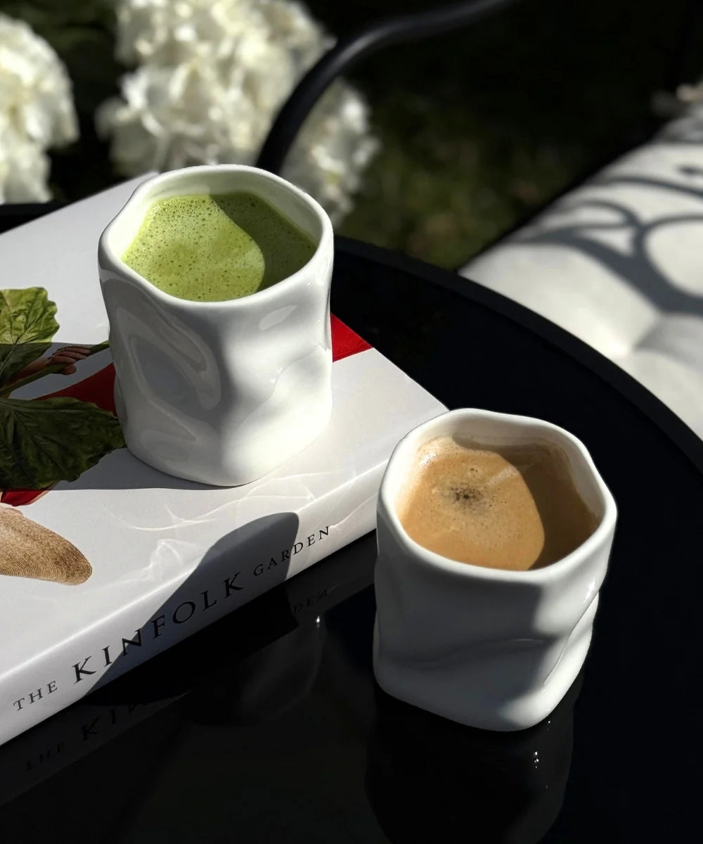 Ervaar luxe in elke slok – deze 2-delige zirconia keramieken mokset combineert kunstzinnige imperfectie met tijdloze elegantie.