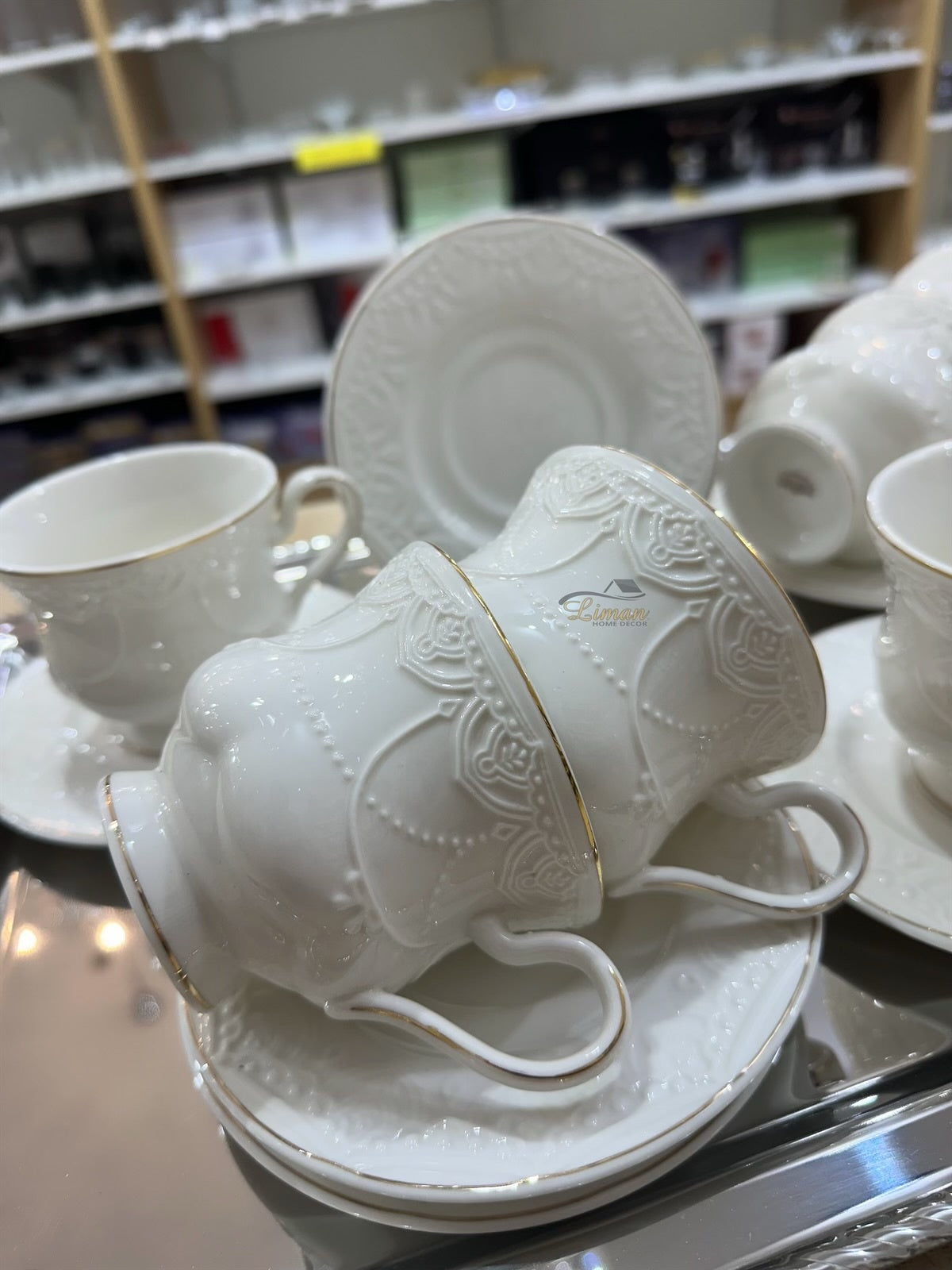 Set İçeriği; 6 adet fincan6 adet fincan tabağı Malzeme; Porselen Gold / gumus detayların uzun ömürlü kullanımı için elde yıkanması tavsiye...