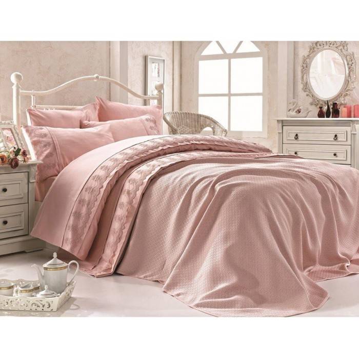 Kumaş ÖzelliğiCemil ipekçi imzası taşıyan set 86 Tel pamuk kumaştan üretilmiştir. Üründe fransız gipür kullanılmıştır.Ölçüler:Pike: ...