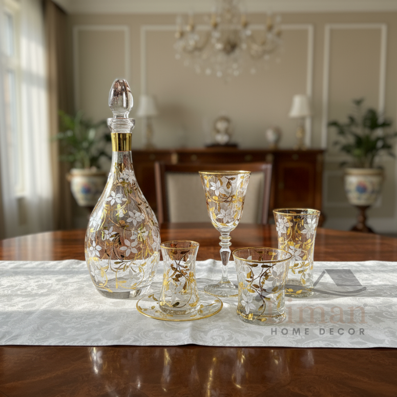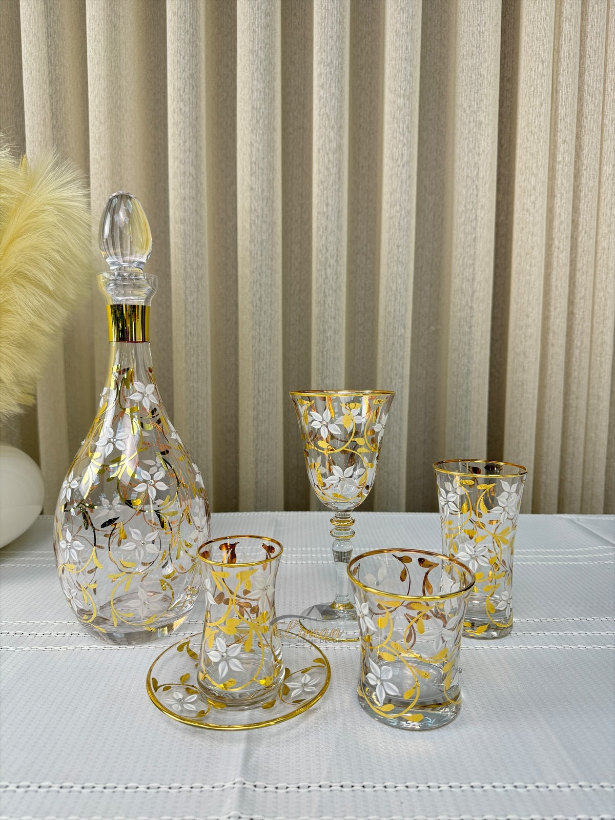 Ürün içeriği:6 x Mesrubat Bardağı6 x Su bardağı6 x Çay bardağı6 x Çay Altkığı6 x Kadeh bardağı1 x karaf