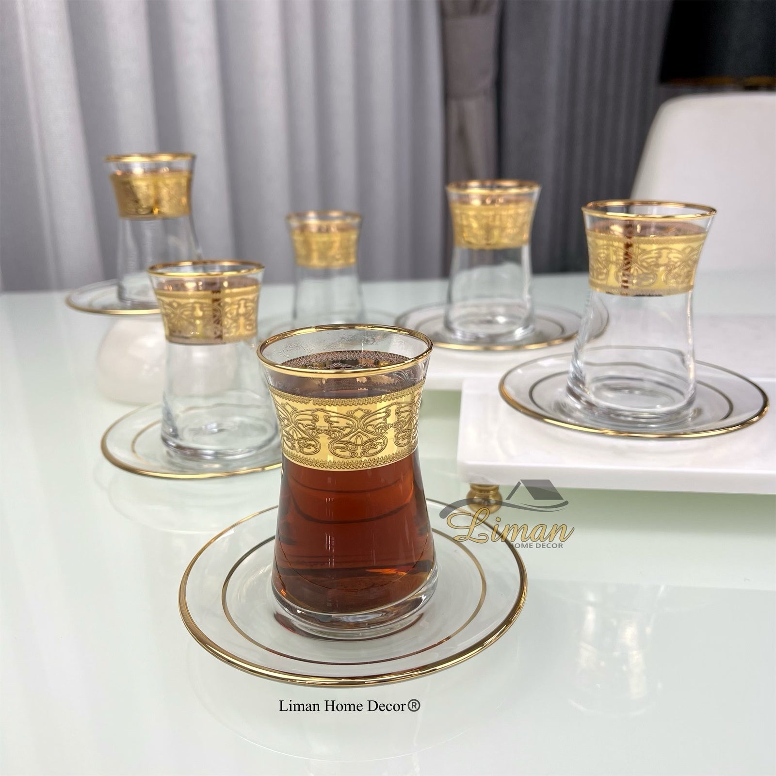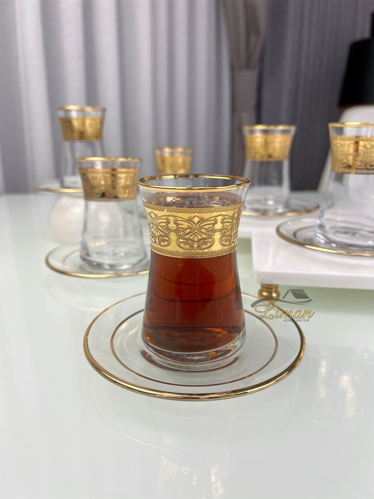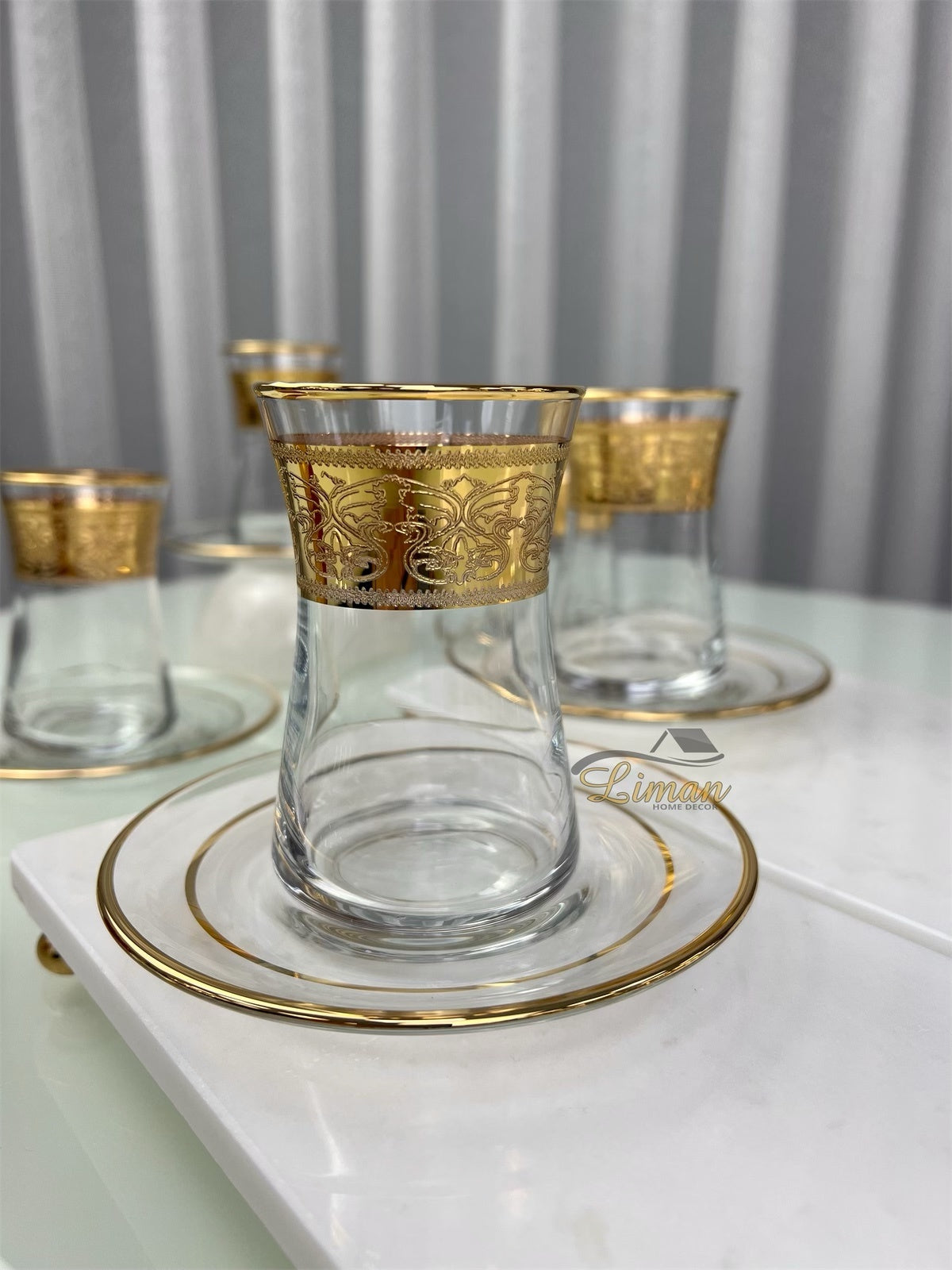 İçeriği:6 adet Altin Detayli Cay Bardagi6 adet Cay Tabagi Bulaşık makinasında en kısa ayarda yıkanması ya da elde yıkanması, ürünün...