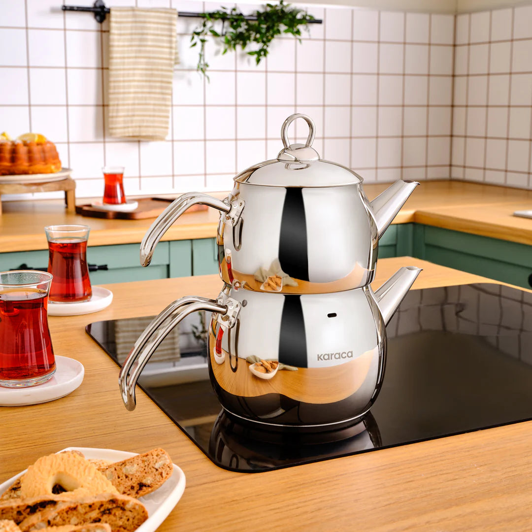 İçerik Demlik: 1,0 Lt + Demlik Kapağı Suluk: 1,6 Lt Malzeme: Paslanmaz Çelik Özellikler Ara kapak ve süzgeci bulunmamaktadır.