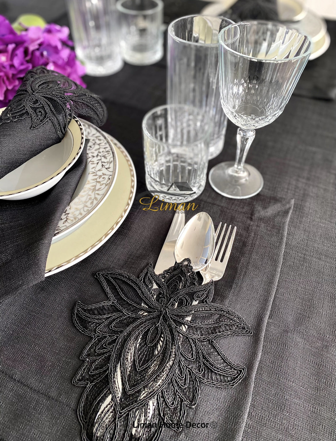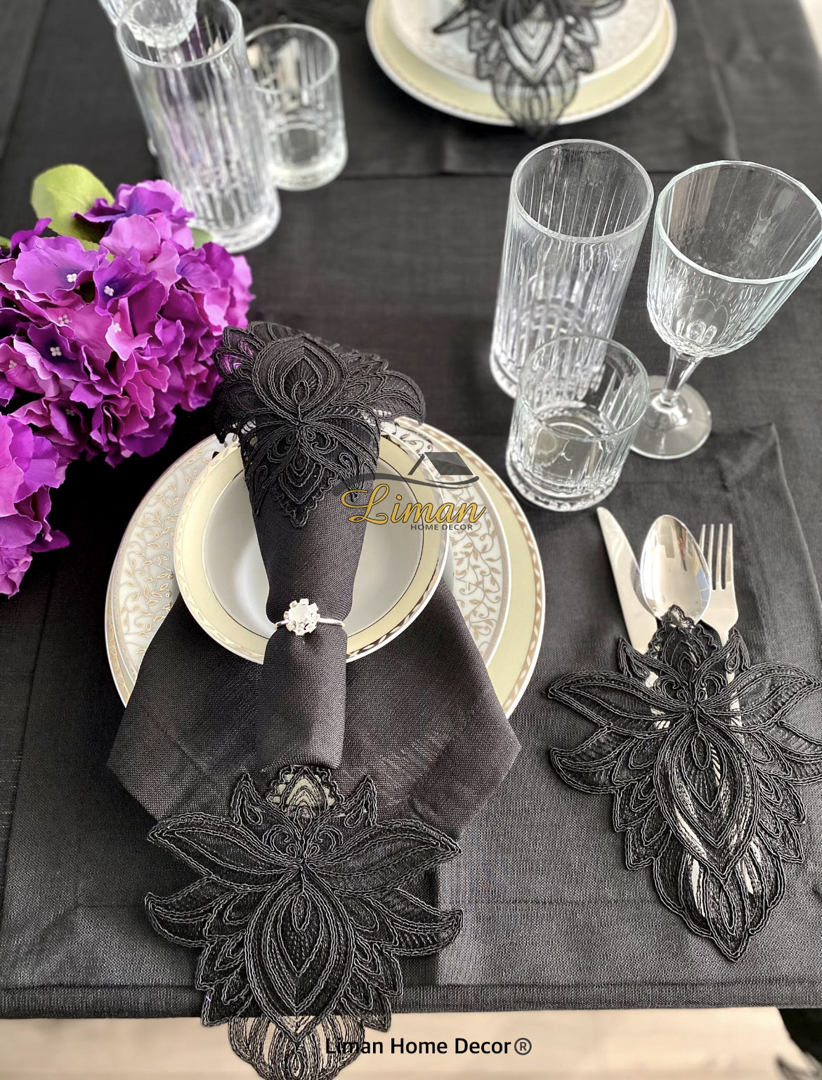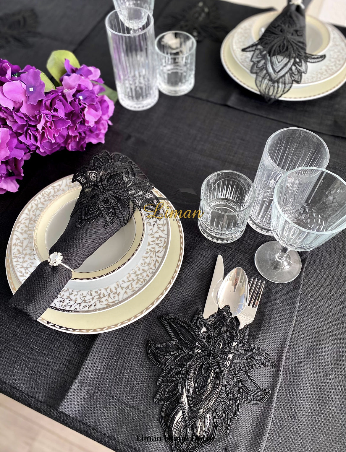 Lotus Siyah Amerikan Servisli Masa Örtüsü Seti 34 Parça
