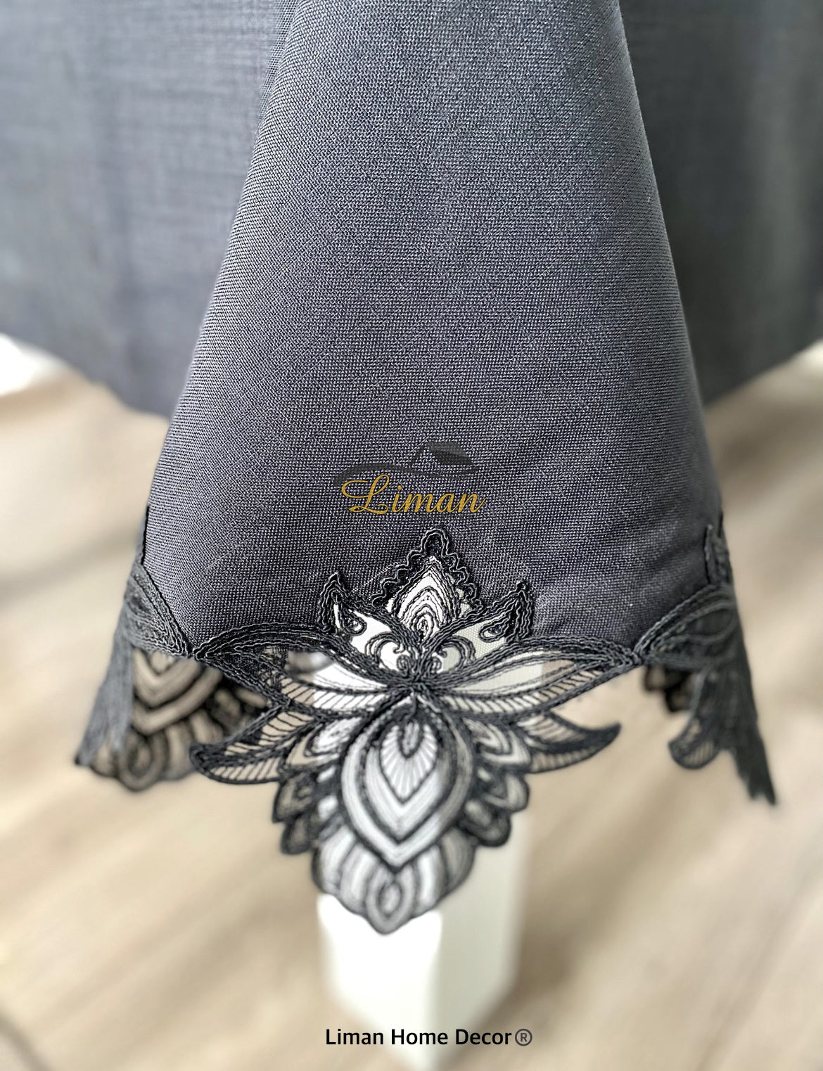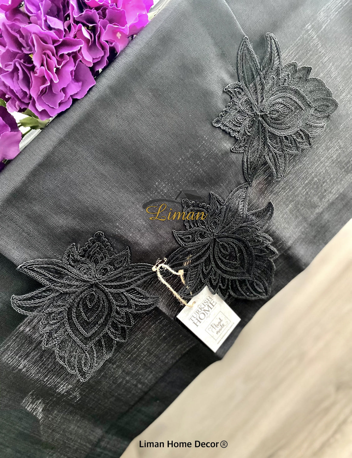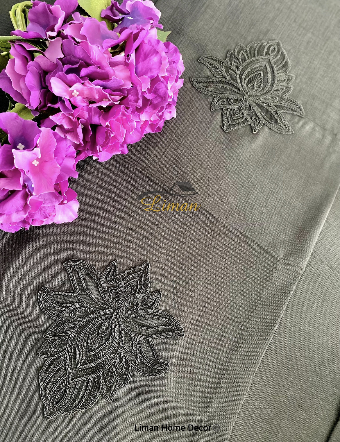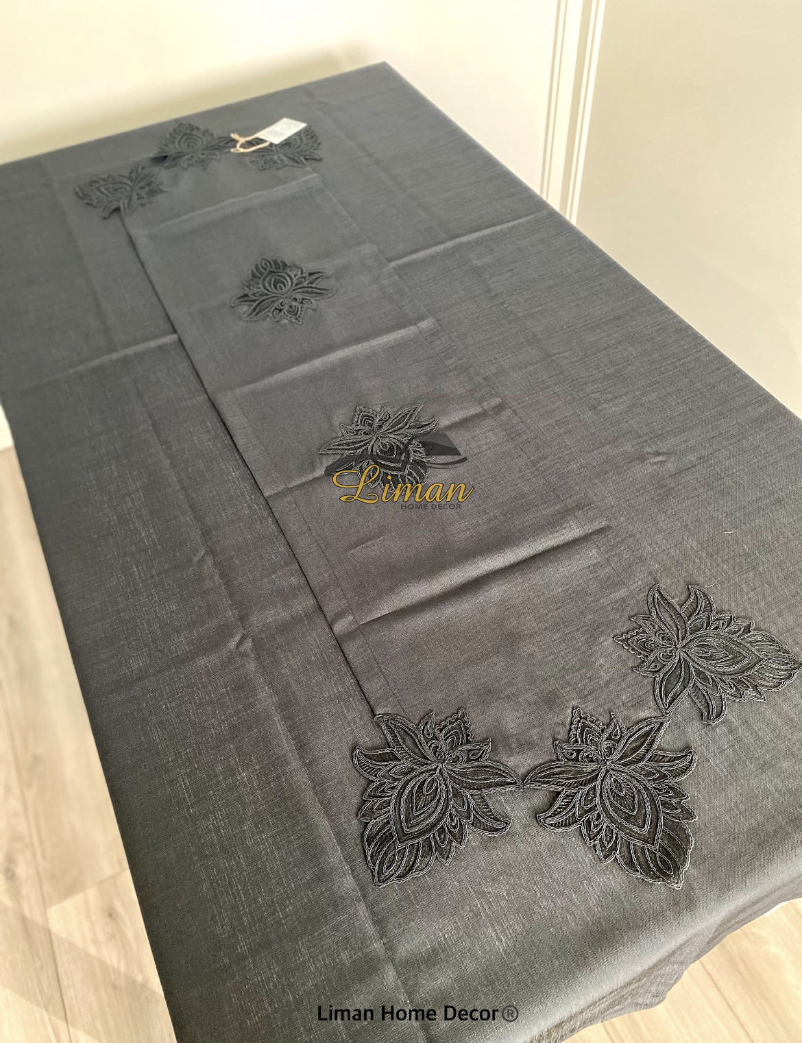 Lotus Siyah Amerikan Servisli Masa Örtüsü Seti 34 Parça