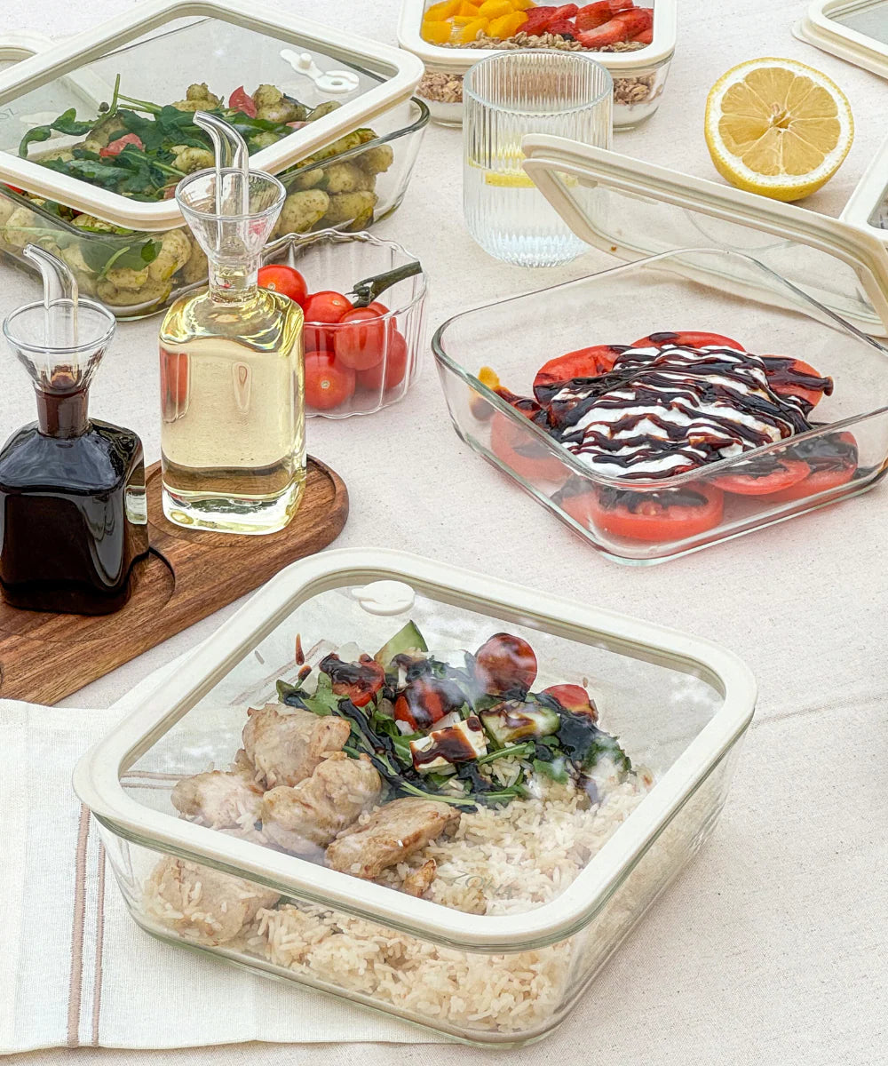 Yiyeceklerinizi daha uzun süre taze ve düzenli tutun, şık cam saklama kaplarımızla. Hava geçirmez kapakları sayesinde yemekleriniz sadece daha uzun süre taze kalmaz, aynı zamanda buzdolabında kötü kokuların yayılmasını da engeller. Şık, minimalist tasarım her mutfakla mükemmel uyum sağlar ve düzen ile fonksiyonalite sunar, ayrıca BPA'sız, mikroplastiksiz cam, güvenli ve sağlıklı bir saklama sağlar. Mutfak ve buzdolabınızı daha verimli ve güzel hale getirin, çok yönlü ve dayanıklı saklama kaplarımızla!